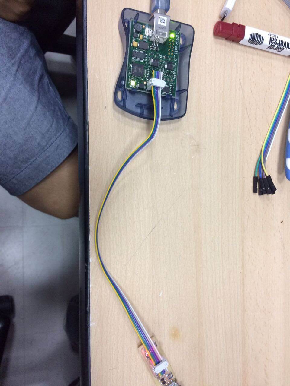 Now we plug the programmer to PC and connect the board to the programmer. Run "make flash" to programm the board. Several bars are shown on the screen and if everything is correct