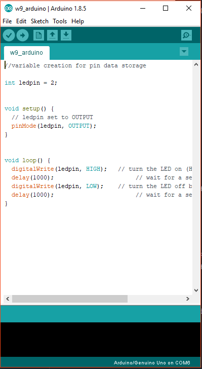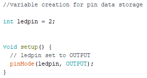 Week 7 board have it's LED on Pin2, so I need to change the code from LED_BUILTIN to pin 2. I created a variable to storage the pin number and labeled "ledpin".