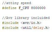 Using Arduino IDE, the first part of the code is to set CPU speed. Attiny45 runs usually at 8MHz, so speed is defined as a whole number. Also it is important to