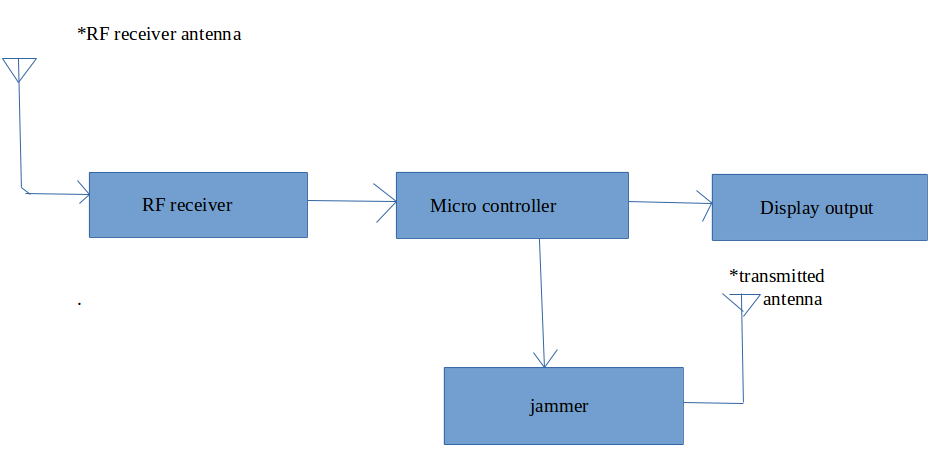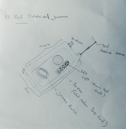 I came up with the idea of detecting device upto 3G signal level. The signals are received by the Antenna in the device, After detecting the signal the device get beeped and the LED used in this device get lighted and the signal get reached at a particular level the device will jam the cell by Automatic jammer signal by the device.
