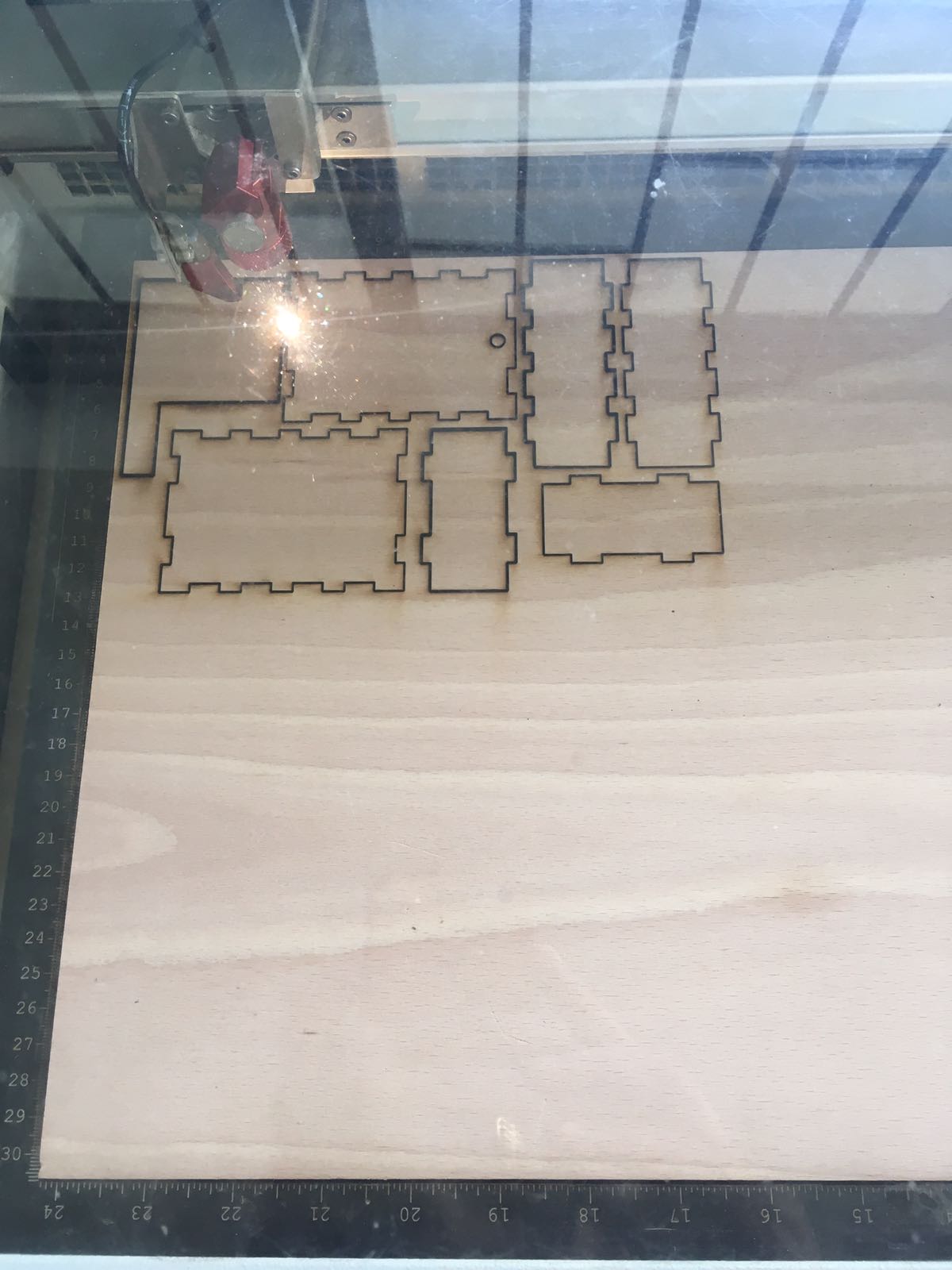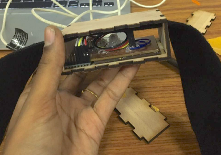 I would like the device in a silicone case which would be comfortable to wear on the head. However, due to lack of enough time until the presentation, I just made an unimpressive press-fit box using Trotec laser cutter (In the final presenation, Neil commented that the box is clunky-looking. What could I do. I was too occupied making the electronics work, I had no time or energy left to better design the packaging). The box has a hole for the USB wire and a couple of slits for the velcro band to pass through.