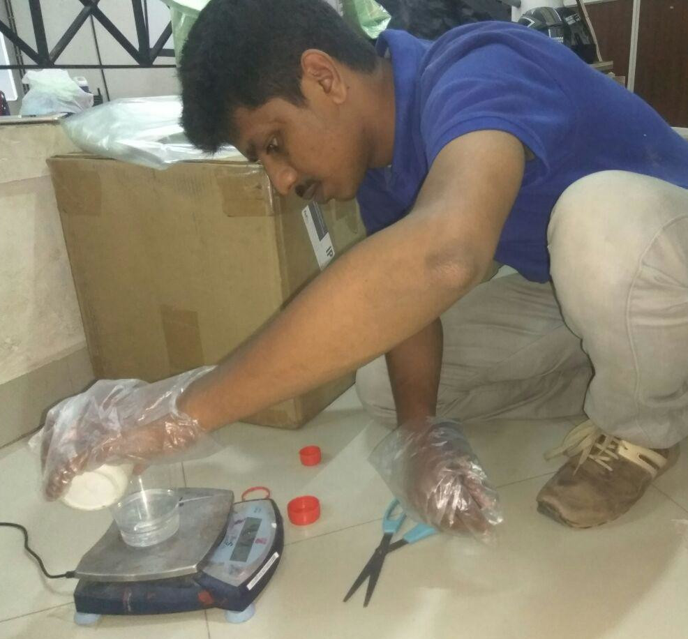 Next step is getting materials ready for putting into the mould I made this week. I plan to use linen cloth as the fabric material and an epoxy resin. I cut three pieces of cotton cloth. Nearly equal to the size of my mould. I along with Akhil is making composite at the same time so what we have done is making the resin jointly. In our lab, we have Easy Cast epoxy 33 an epoxy resin. It has two parts part A and Part B, mixed in a ratio of 100:50. We took 150 gram of part A and 76 gram of part B, mixed it well, and made the resin.