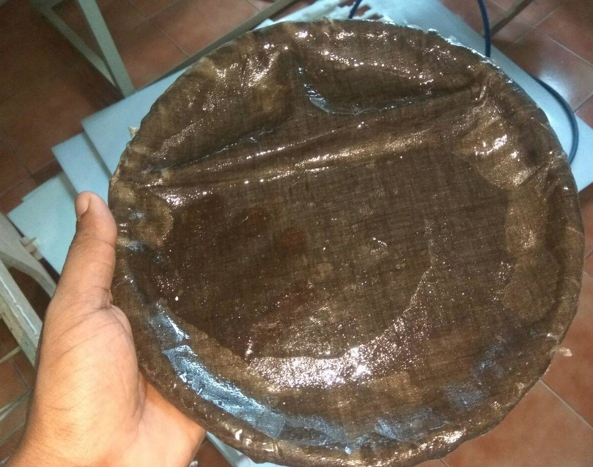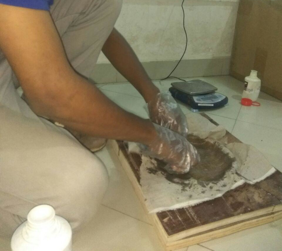 I put safety glove and mixed the resign well. The resin is exothermic and will start to get hot after mixing. After mixing I first painted the mold with resin and then put cotton over there then again painted with resin and again place the cotton over that.I used three layers of cotton to make this.