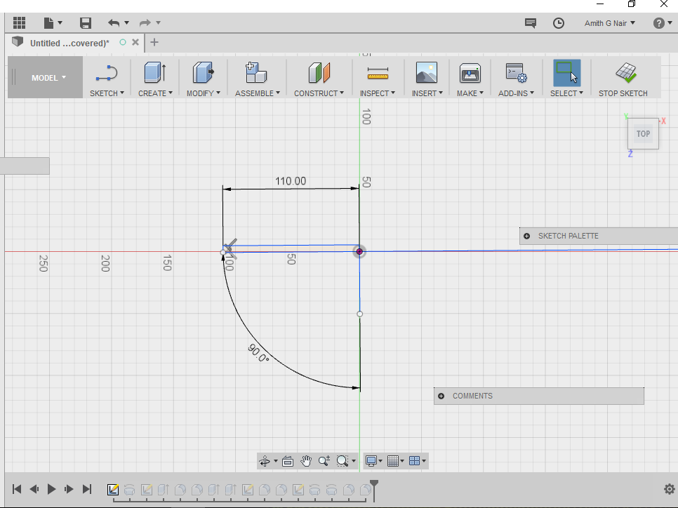 After opening fusion 360 I just draw a rectangle of 110mm, and then perform the revolve function.It creates a solid cylinder.This is the base of my plate.