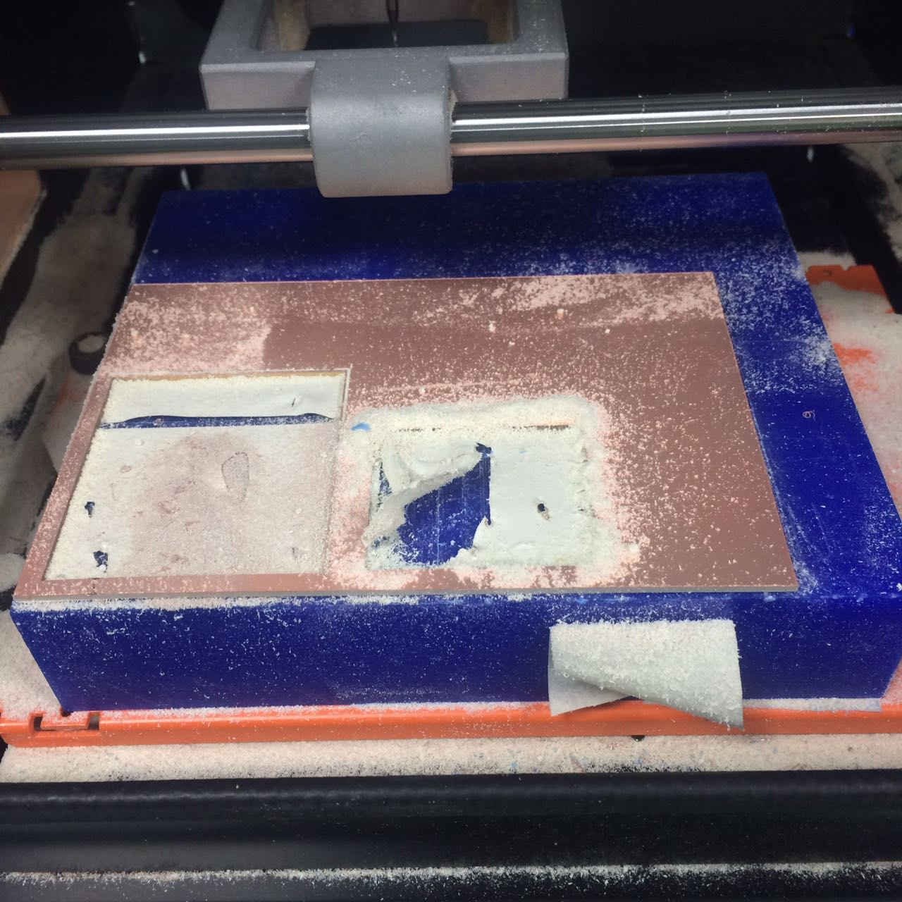 Just origin where you wanna start(x/y), make some space for the board, don't forget to origin the Z-Axis every time you change the bit(Critical process so careful not to ruin the bit), that's about it for the CNC, press cut and add it to the empty box and press Output.