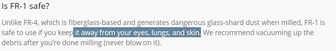 when you solder several boards, you kind of start to get the hang of it, what i got was i heat the surface of the copper, then i add the solder wire and it sticks straight away! the main thing to keep on your mind is that you want to stabilize the component first, for tiny components such as a resistor, i add some solder on the resistor space first, then i hold the resistor with a tweezer and reheat the solder then i put the resistor on its place while the solder is liquid. this works every time! sometimes you get a bad looking solder(not shiny) when you do it this way, you just add some more solder to it after you do the other side, and it will be shiny everytime. The copper board we are using is called FR1, it has a thin layer of copper on top and below is all non conductive phenolic resin, as mentioned in here. There is also a safety concern. To attach the copper board onto the bed, we first attached a wax block with double sided tape, then we put the double tape and make sure we cover the board evenly because we want it to be as flat as possible, then we stick it to the wax block. The wax block is used as a soft material so that the bit doesn't break, and to make sure that the board will be cut all the way. here is an Image.