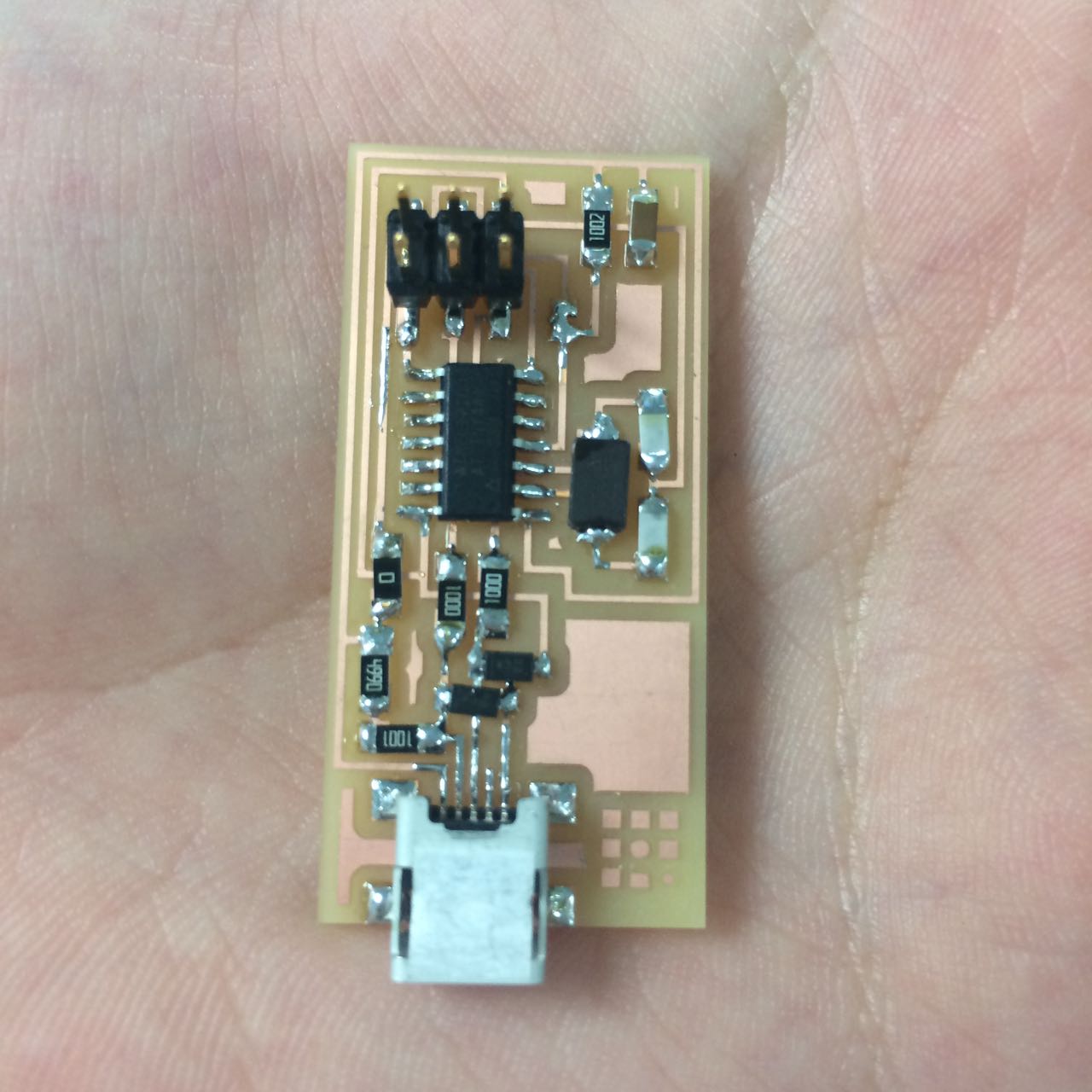 -This WeekFor this week, we are going to create a FABISP board, to understand what it is, you need to understand what few other things mean: The FabISP is a board used to program AVR chips on other boards if they have the needed ISP pins connected to the AVR chips. that being said, I am gonna create this particular FabISP board by Anna Kaziunas. This is my first time doing something like this, and probably the first time working with any board really in my life, i dont have much background on electrical either. The FabISP is a board that replaces the need of commercial products such as AVRISPmkII by atmel
