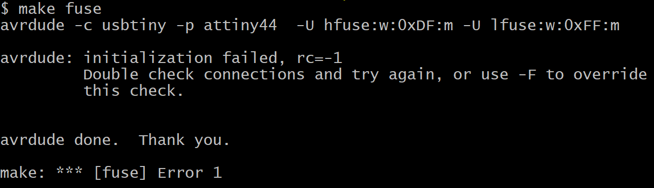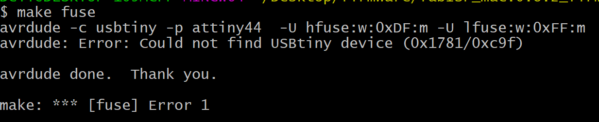 Image Ref to Eidha I am not in the lab at the moment to take my own picture, but this is exactly how we all connected the boards together. Next step as the tutorial mentioned, we need to git bash in the firmware folder and navigate to the fabISP folder. then we use the following commands in order. That is basically it.