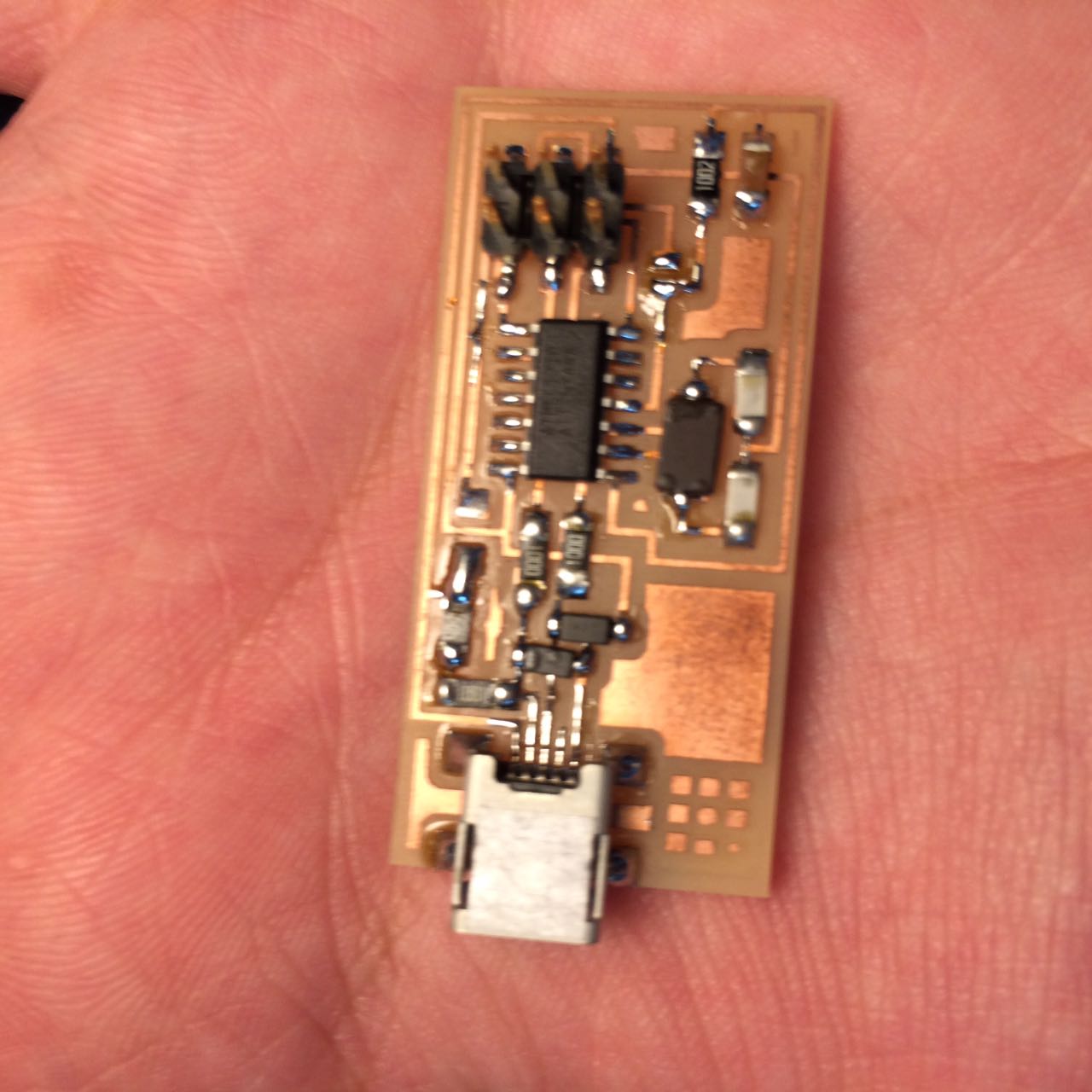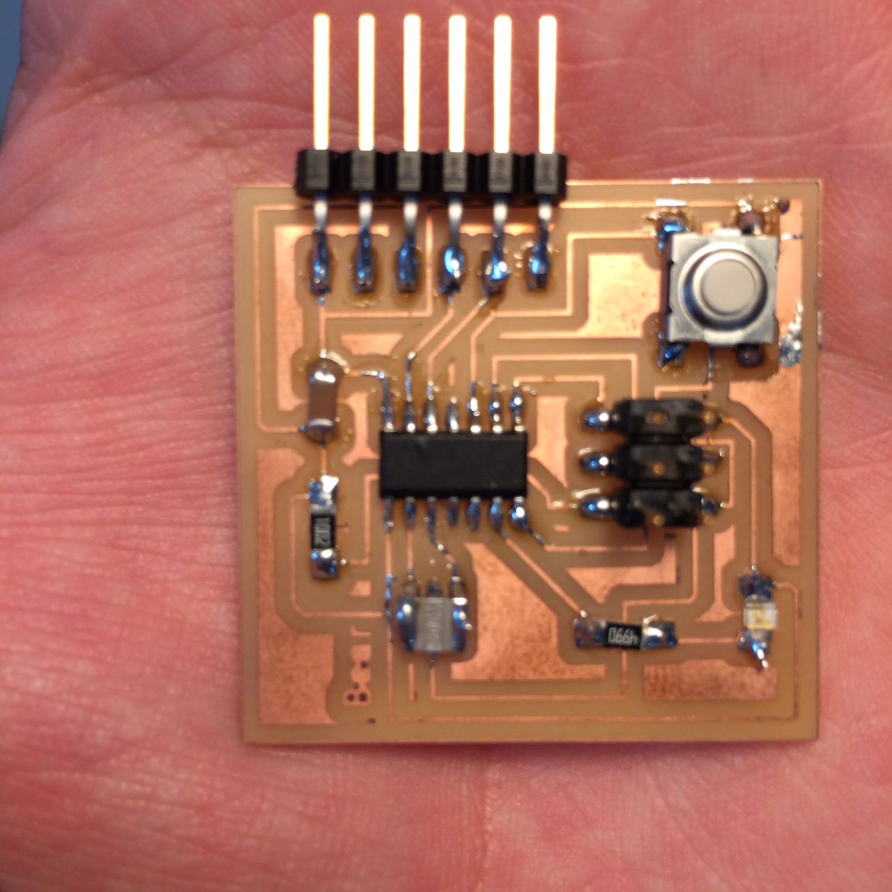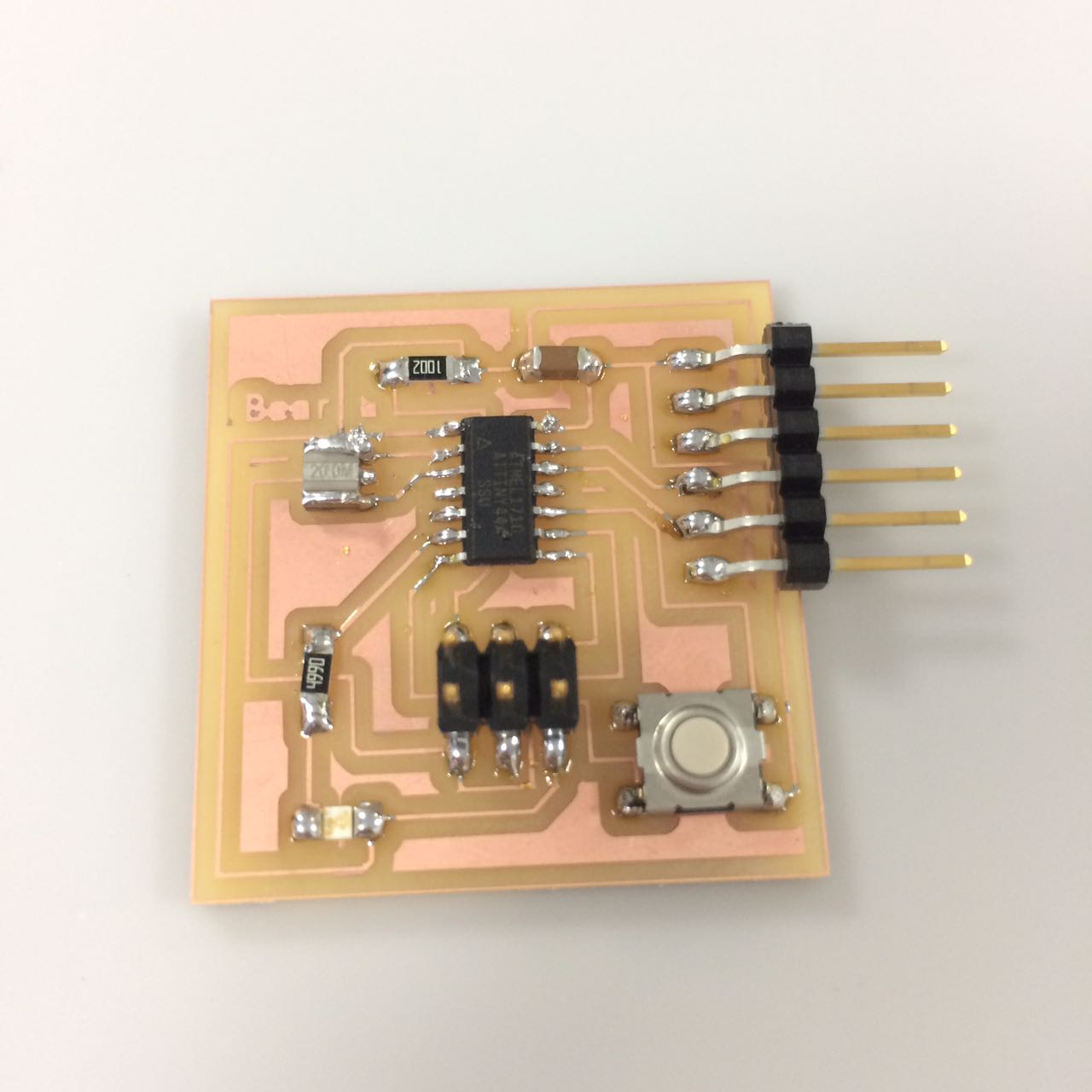 Then of course milled the board on the machine using the same 2 bits and process in Week05 and we got the board ready! Download KiCad file here. 2-SolderingEasy enough now that i am experienced. I do have a tip on soldering on Week05.