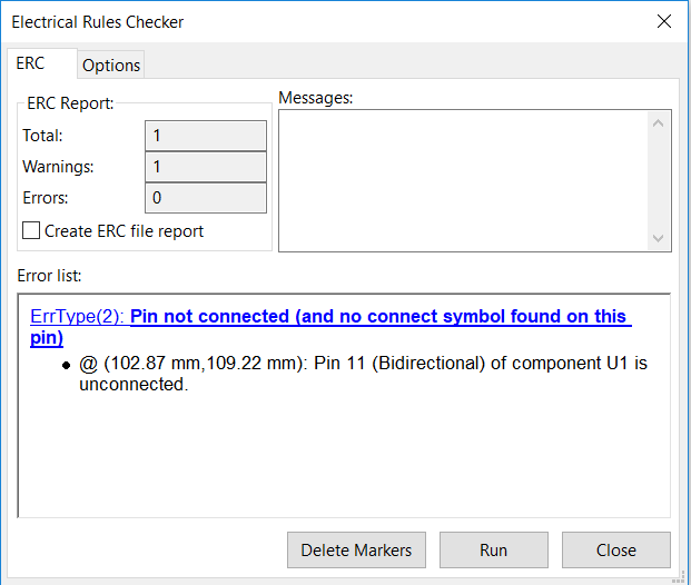 See it has the same process, you just click on it and write an informative tag, i wrote "something" below, and place it next to the wire. -Place Power Port: This tool lets you set a component, but its like special component that has invisible pins with names like GND. here is a link to a better explanation i found. This is what the icon looks like below. You get a window when you click on it, the window is just like adding a component window. And then you just connect it simply at the end of a trace wire. Like this. -Place Not-Connected Flag: This tool helps you clean your Electrical Rule Check(ERC) more about that below. You simply place it on an unused pin like below. More about how it works below in the ERC. -Perform Electrical Rule Check: This button checks your electrical connections on the schematics, if something is either connected to nothing or connected to nothing, it shows here as a warning, it helps to remind you if you forgot something. Using the above tool "Not-Connected", will help remove a problem such as shown below on the ERC window after you run the check. And it actually points at the schematics where you have an unconnected pin. This is all about most tools i used in KiCad Schematics. Board DesignTo move from schematics to board design you click on this button.