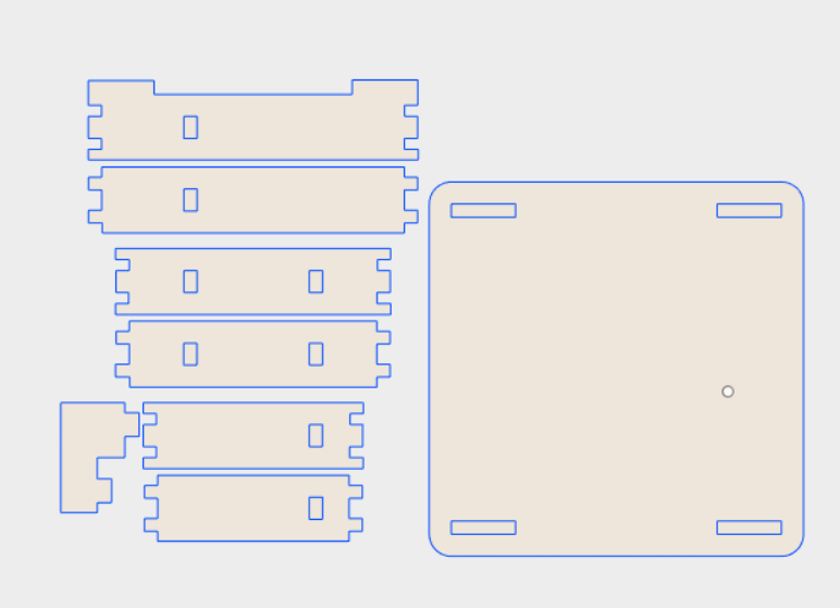 This is the result above, this result was using 6mm cardboard. I also created a larger design. The larger design is meant to be used on the 12mm thick plywood board, to be milled on the shopbot. Download f3d fusion file here. 2-VCarveI will explain the process of using VCarve below. When you create a new VCarve file, the first thing you need to do is to give the software the dimensions of the board you are cutting. In our case the size is 2400x1200mm, then the thickness of the material in our case 12mm. the appearance to wood. After this step, you go to this icon. This allows you to import your dxf, file and that is what i did, i saved my fusion sketch as a dxf and then imported it here. So great now your design is in VCarve. The next step is to use this tool called "Create Fillets". This will show this window. The tool i am using is 6mm diameter, so 3mm is the tool radius. I used the dog-bone because i wanted to fit pieces easier. I used the dog-bone in the above picture only in the internal slot. -Problem Here-I had a problem at this point, this piece is not connected for some reason, the shopbot will ignore this piece when you calculate the toolpath and that is a problem! See how when i clicked on that side, it selected only 2 vector lines. To fix this I used joining tools. You can use the "Join open Vectors" Icon first one to the left. and i tried joining with a straight line, they all work depending on what you need, they join lines for you. once you are done joining, your piece should be one piece only like this. You now have this design ready so far. Problem 2, I chose not to use dog-bones on the right side slots, i actually forgot some and meant to not use dog-bone on some, anyway everything was solved by force! -ScrewsBefore we do anything, screws are important to stabilize the plywood you are cutting, having a couple of screws around your piece is recommended, however if you are gonna use screws, it is better to have the exact location of the screws on the VCarve file, so you know to keep away from them. To do that, you just create circles with this tool.
