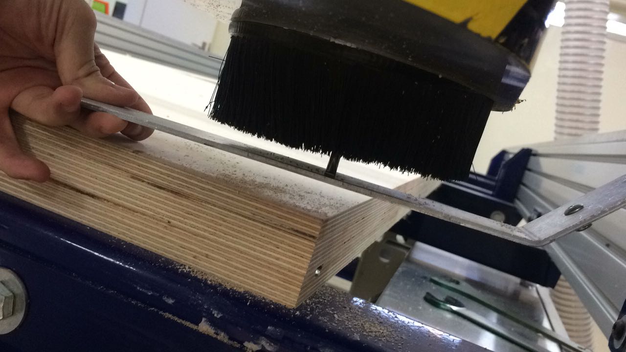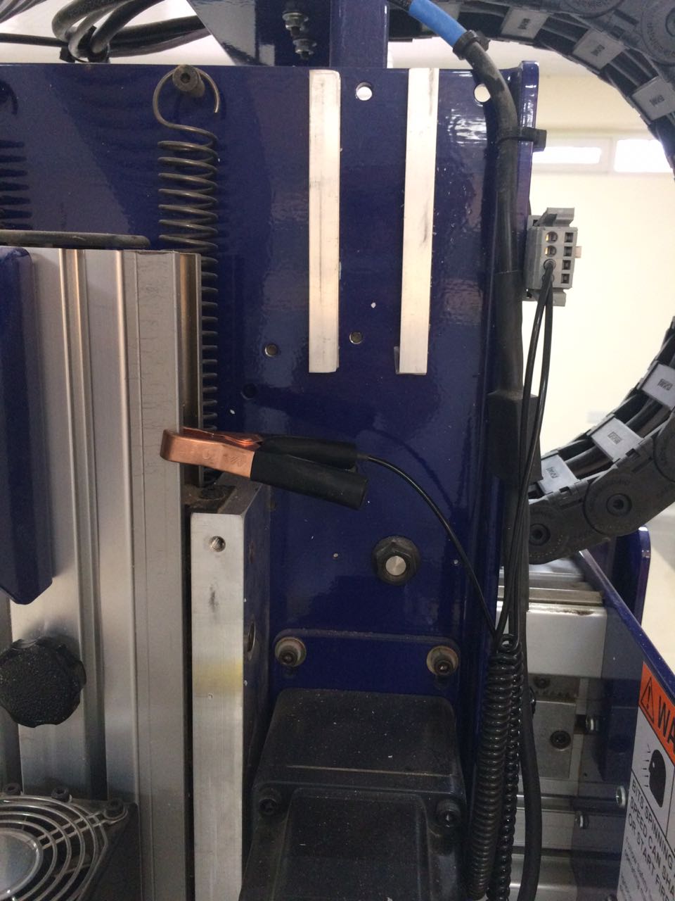 now we move the bit to a flat surface, it's better if that flat surface was closer to the cut but its not that important. Then we clip the clip to the metal chasi of the shopbot, and test if the software is detecting the plate touching the bit.