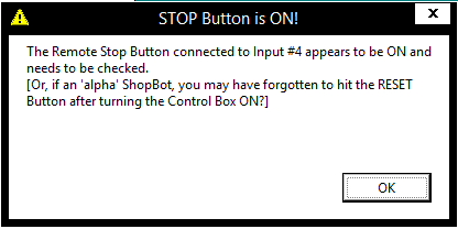 Open the Software. First thing you will notice is this popup window. Now i dont know if this is just our machine or all shopbots are like this but we do have to click the stop button at least once and then make sure it goes up again, then we click the reset button, this will allow the software to connect to the shopbot.