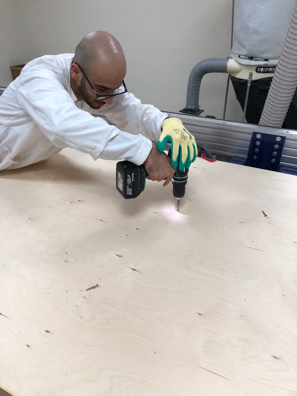 Now we screw the screws into the holes using a drill. make sure that the head goes inside, or not too much out, few millimeters doesn't matter.
