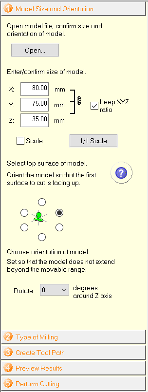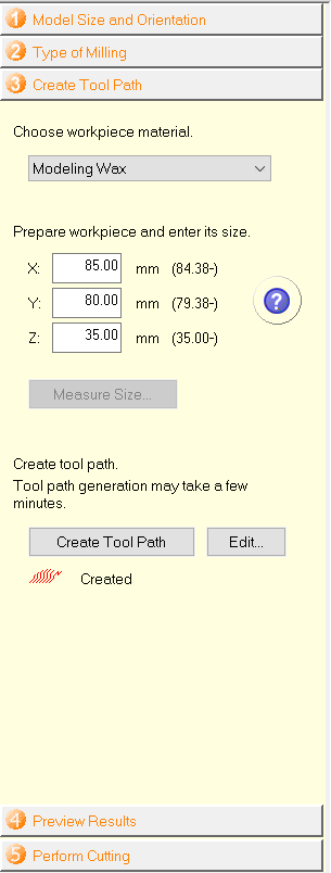 The other designs were easy, just a polygon and then extrude it, the spanner actually took me time to design, i wanted it to be practical with the nut, so i made sure it wasn't gonna be tight on the nut, looser is better, i made it 1mm wider than the nut. SRP SoftwareAfter exporting the fusion design to STL, i opened it with SRP software. SRP has only 5 steps to finish the designing, I really liked how they organized things. Above is the first step, in this step you just confirm the size of your model and orientation, mine was correct with this settings and i didnt want to scale it down. In the type of milling, there are options to reduce the time of your cuts, like "Faster cutting time" however i used a better surface finish because i wanted it to look and feel nice, my design actually didnt need that, i just chose it anyway, i didnt care about the time. It is the same withthe 2nd option, but i chose "Model with many curved surfaces" although i have it mostly flat. So the first 2 options really control how fast your cut is gonna be and the quality of the final cut. The third option is really important, i was using a block of wax so i chose a "Blockworkpiece" and my milling machine SRM-20, doesnt cut from bottom so "Cut top only". This is the most important step, you need to choose material for the first option, modeling Wax for me. The second step you actually have to do something here, you need to set increased values for x and y axis, meaning you cant use less than what is given in the brackets, or even equal for that matter, only the z axis gets to have the same setting. This new larger size you enter will not affect your cutting in anyway, it is just like a precaution for you while cutting, do you have that much extra space just incase? that was okay for me because i already had precautions from the fusion design, i already created the design and made sure it is smaller than the work piece itself, i did that by designing the wall of the piece slightly smaller than the Wax block i had, which i measured with a caliber. If you click edit in the creating tool paths section, you will get this green window, now this is the most important window because you have to set up your bit type and size here. There are 2 steps here, roughing and finishing, for roughing, you only need to change the bit to the bit you are going to use, if you click on the selected icon and choose the tool used for the process from the list, mine was "3mm Square" milling bit, hit apply and go to the finishing. The cut area and cut depth dont really affect your cut if not touched, however it will help to reduce time if you set them partially. Keep in mind that finishing is after the roughing, so by this time, you dont need to cut the depth all over again, i eye balled it (check below pic) and thought this much was all empty for my wax model, this reduced the time of the cut by 30 minuts on its own. This was for the Depth, the Cut area is the same but with the sides, if you had empty spaces on one side, it is better to partially cut it too for faster cut. After every step there is an apply button, you have to click that for the setting to save, later you have to close and click "Create Tool Path" button, only then you can go to the next step. Here you get the estimated cutting time, 1.9 hours is what i got, I prefer clicking the Show Model button, it really lets you know when you have something wrong, it is indeed a good preview. My preview looked great. The last step is how you prefer cutting it, from the SRP software itself, or do you want to export the cut files? I chose output to files just because i am familiar with VPanel already. more about VPanel in Week05. SRM-20First Stick the WaxBlock with a doubletape and change the bit to 3mm.