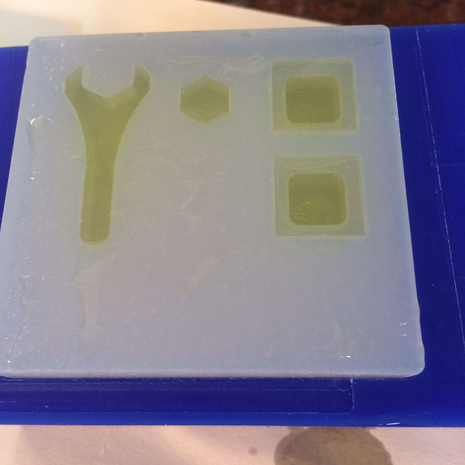 90 grams is too much, so i poured the rest into the old mold and this is how a thin pour looks like.