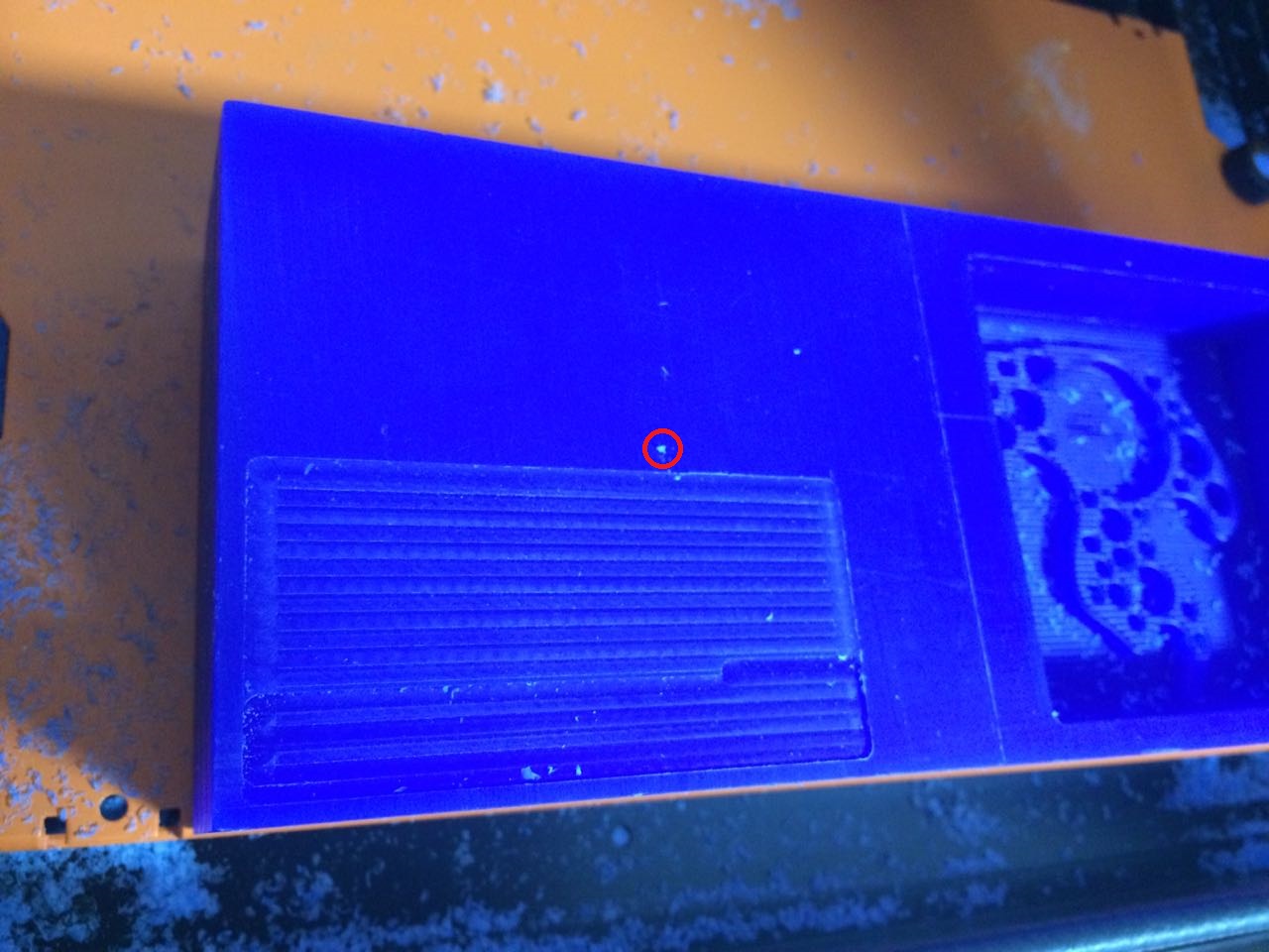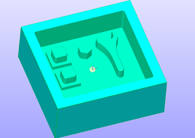 Above I actually origined the xy axis on bottom left corner, once i noticed that i stopped the cut and started over with the orgin in the pointed middle point. So yeah, you just origin all axises and the output the cut file like above. The outcome of the roughing is always like this, sorry for the bad picture but if you look closely, there are rough lines on the surface of all shapes, teeth like marks.