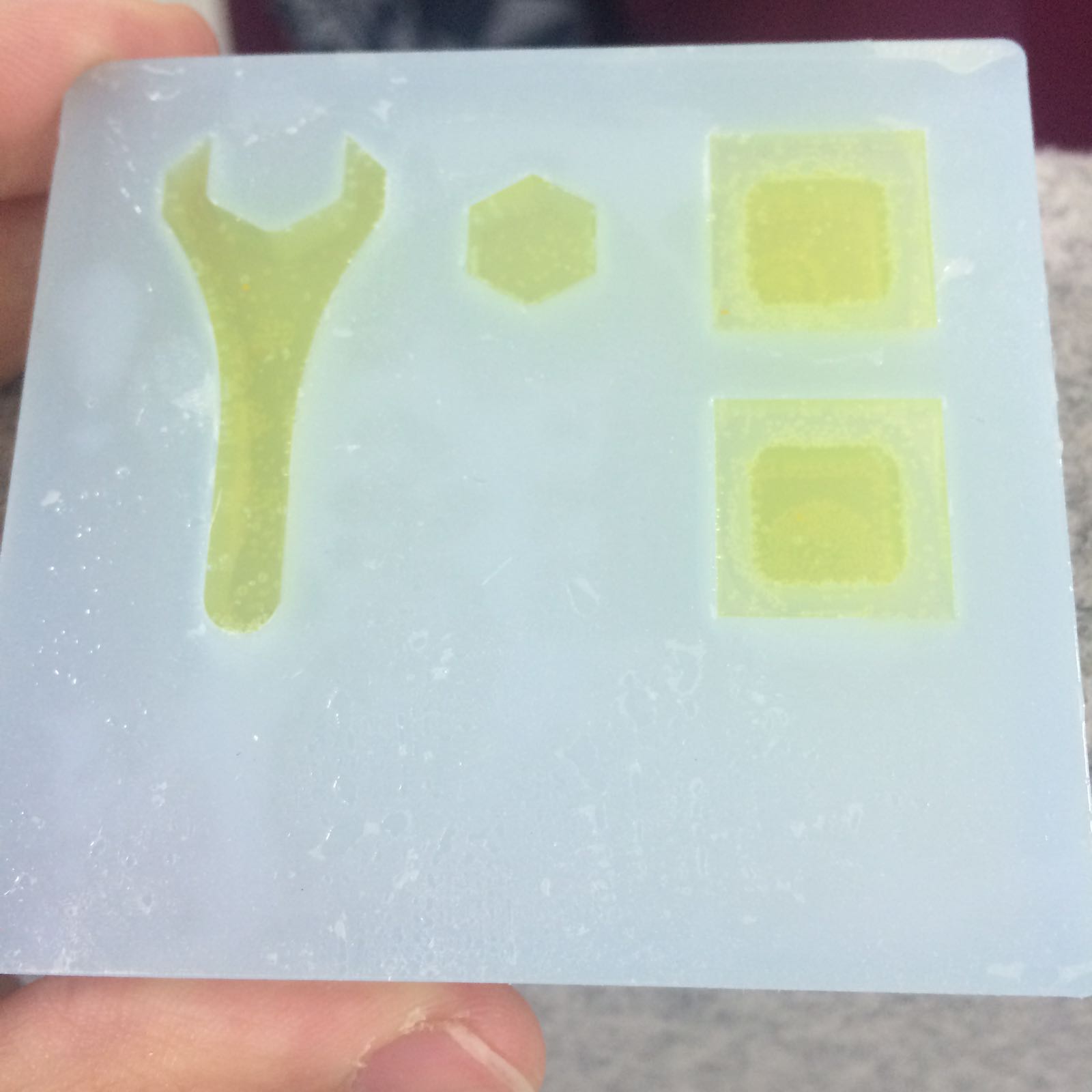 The buttons look perfect! bubbly but perfect! just needs some vinyl sticker work and assembly!