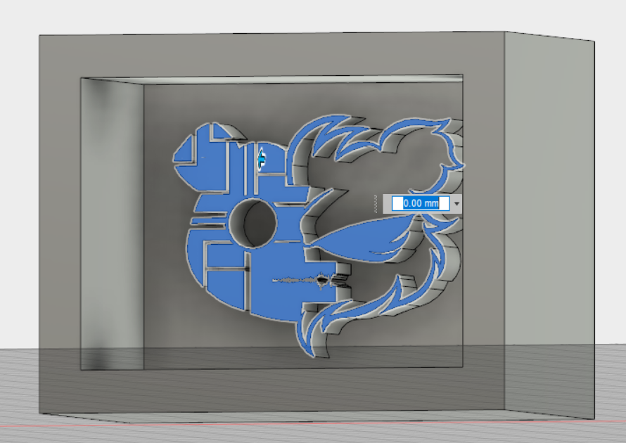 My first design was basically a logo of our game dev team, that we are hoping to go official with soon! I had to actually trace the logo from a picture, using spline tool and line, and then i extruded. So i extruded and after resizing it, and calculating everything, i had to make the wall of the mould. So that's what i got! However, that didn't turn out well, at the SRP, when i chose all the correct settings and previewed, it was just too thin at the edges, even though i tried and previewed the 1/64th mill bit. So i had to change the design, the new design was basically me playing with the spline tool, and i ended up with fire. The edges were too thin here too, so i modified this. I thought i wanted something extra, and i extruded and put it in a box. although i completed this design, it was too flat, so i made a new one, but here is how it looks like at the end, and the process is the same as below.