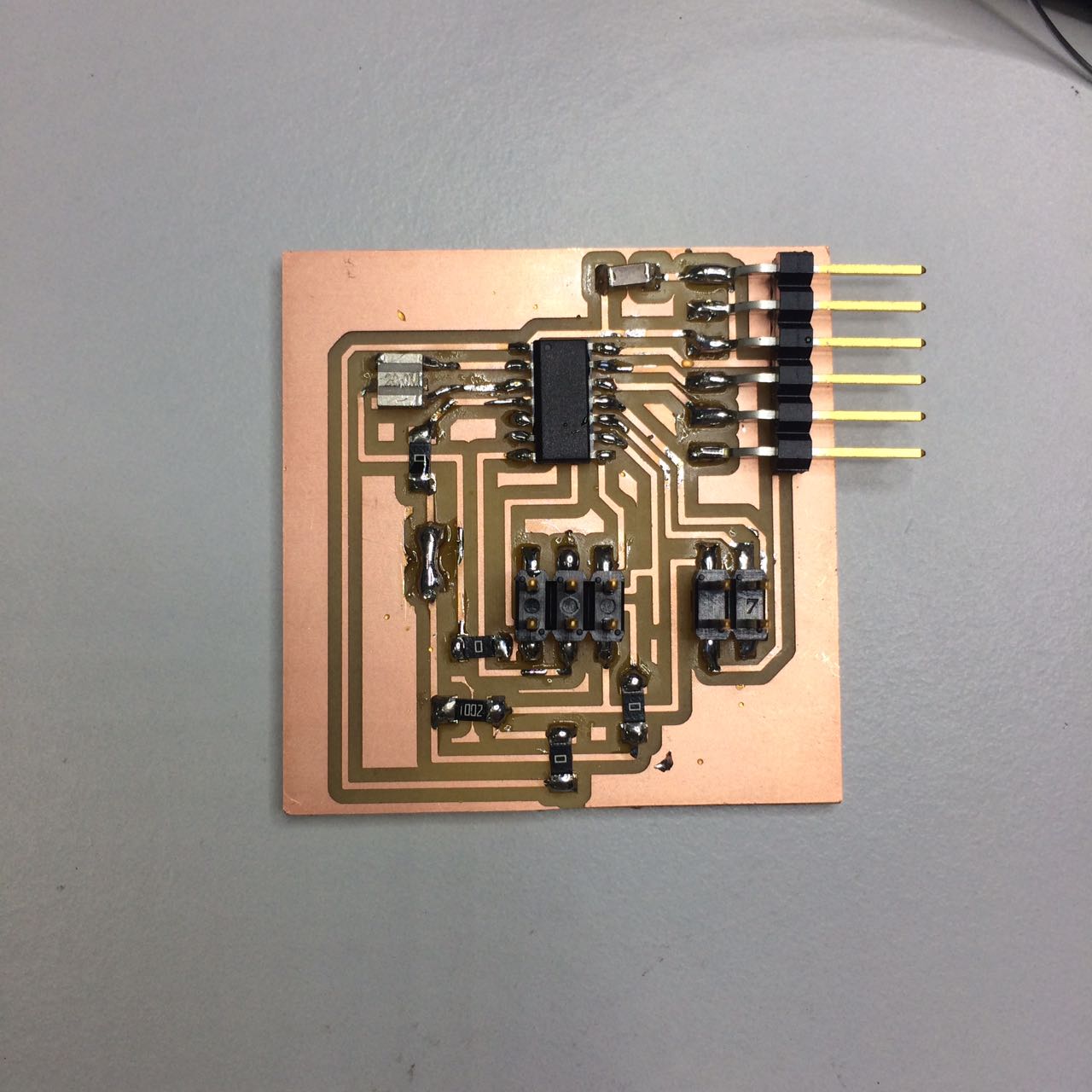 I went to FabModules and converted the PNG to an RML file with the right configurations for my milling machince which is the SRM-20. then did the tracing! The board is finally done.