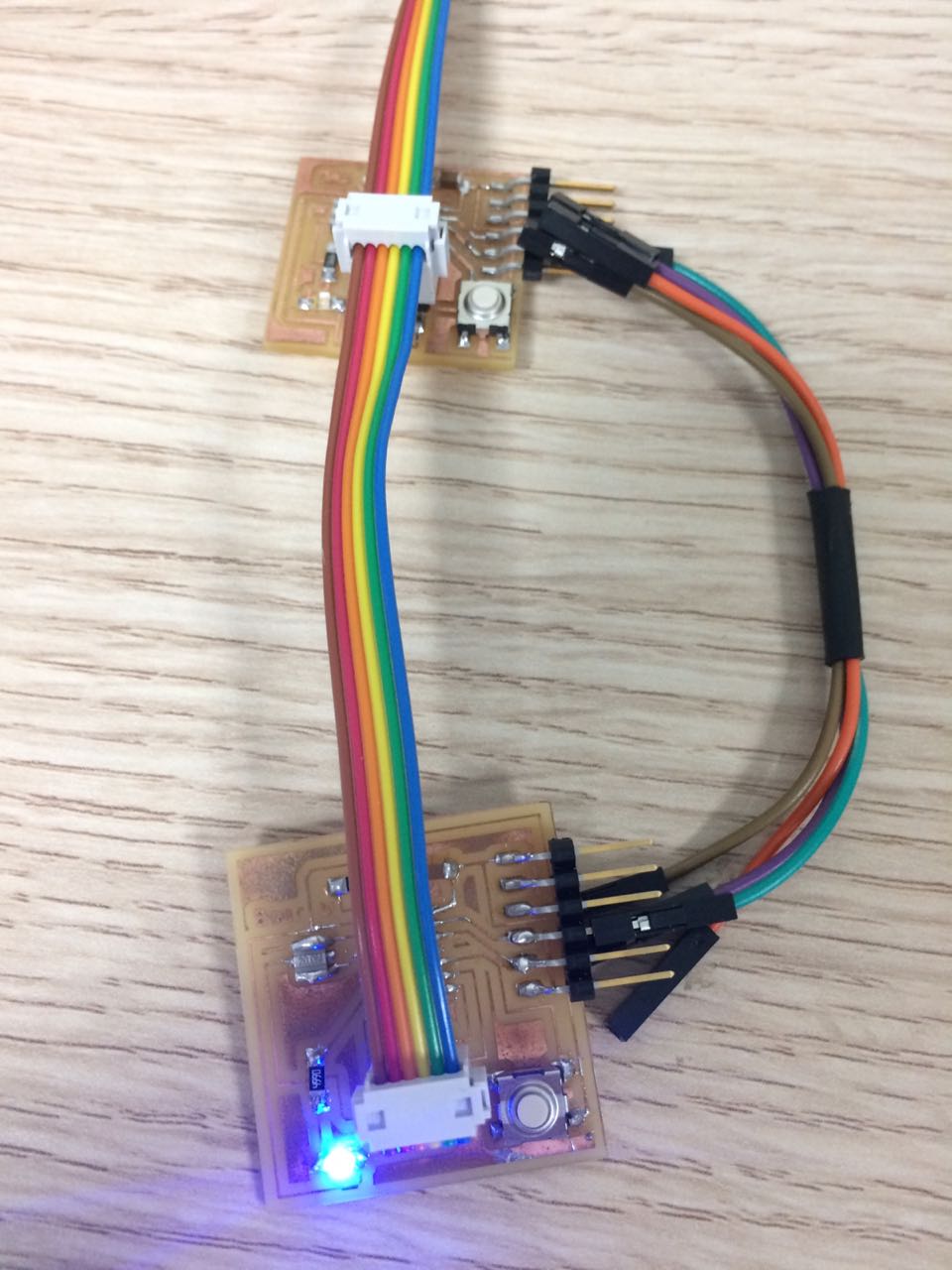 However what you really need for this week is to have 2 boards with an FTDI header that has the RxD,TxD pins connected to it and the microcontroller chip you are using, in my case attiny44.