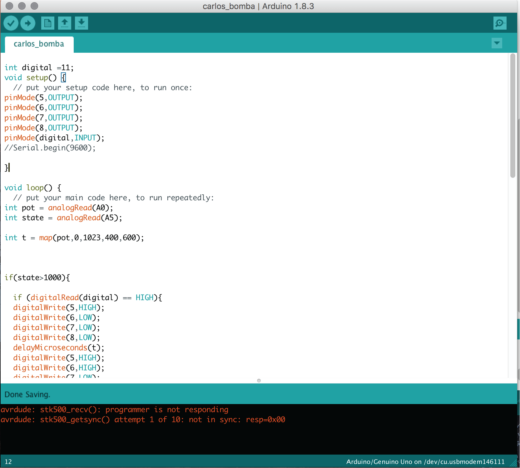 My first code works like this: If the signal given by the second board is "HIGH" than it means that the water temperature is appropiate for brewing. If it is, then once the switch is turned on, the peristaltic pump will start working. It works with an 8-step stepper motor, so I used almost the same program as in week 12, with a variable delay between each step. The delay is set by the potentiometer.