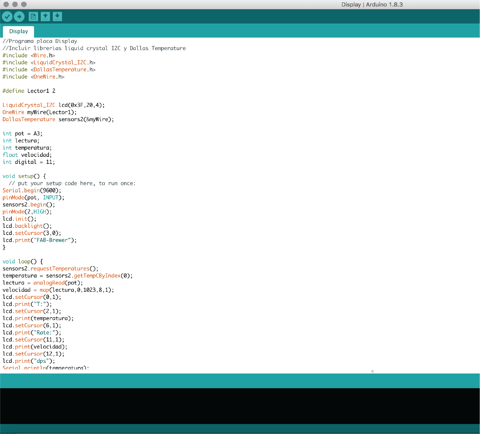 The second code works like this: The display is always on, and showing the water temperature and drip rate. The temperature is given by a DS18B20 water proof temperature sensor. If the temperature is low enough, the board sends a digital "HIGH" signal to the first board.