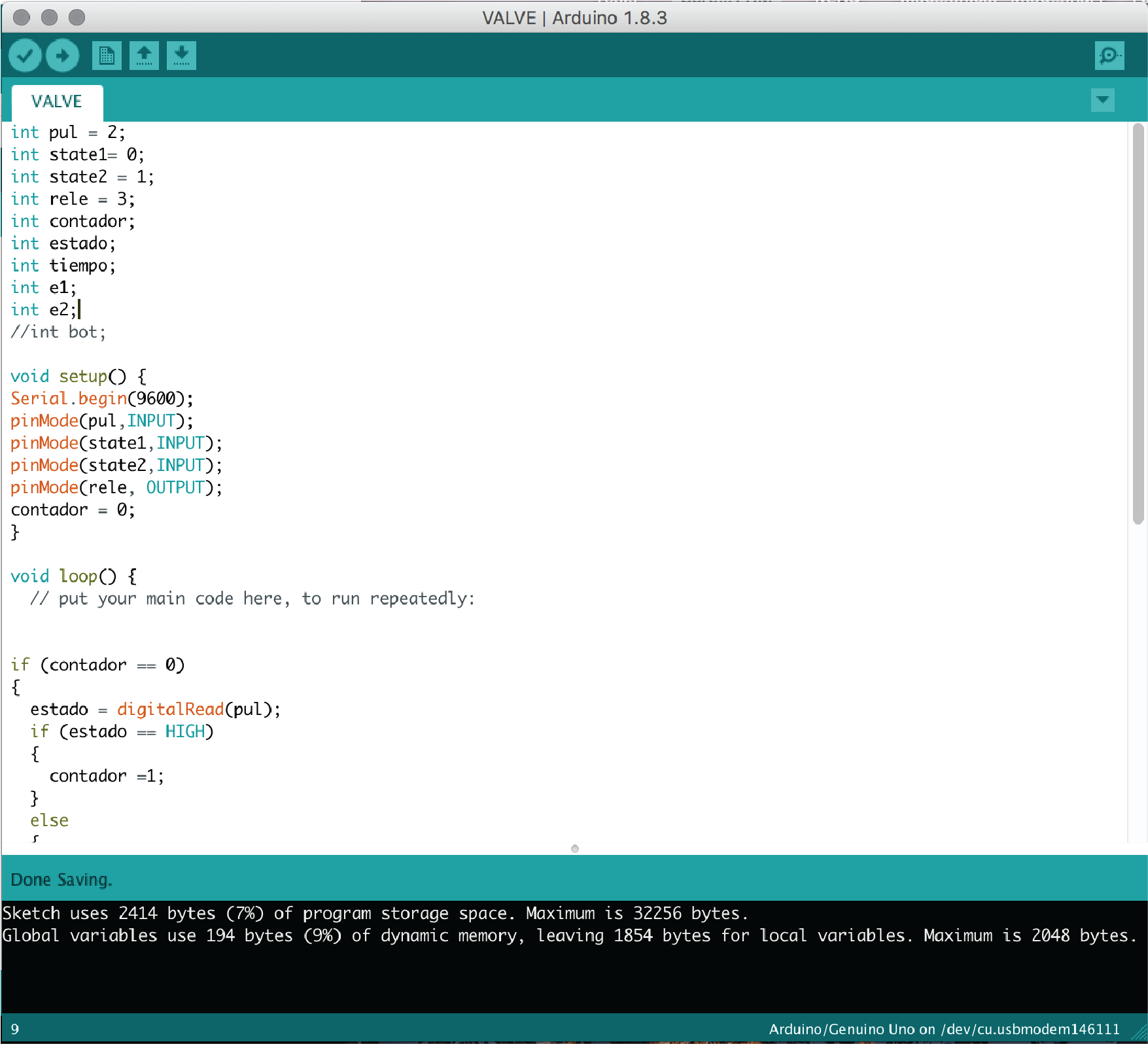 The last code runs separately from the other 2. The Attiny 44 receives information from a selector and a push button. The selector has 3 positions, which in turn control the cup serving size: Small, Medium, Large. When the push button is pressed, the processor chooses a size accordingly and turns on a relay which activates a solenoid valve, and serves coffee. After a designated time, given by the selctor's position, the relay is turned off.