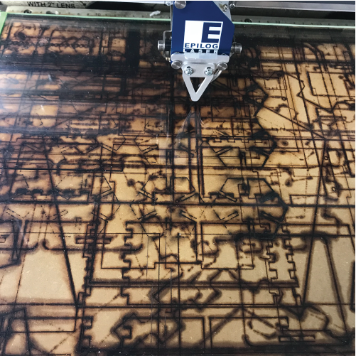 The first thing I did was Laser Cut the tanks. I used my epilog machine with the following parameters: Speed: 2%, Power 100% and frequency 100%. I had to hit play 3 times for the machine to properly cut the plexiglass. First I zeroed the machine...