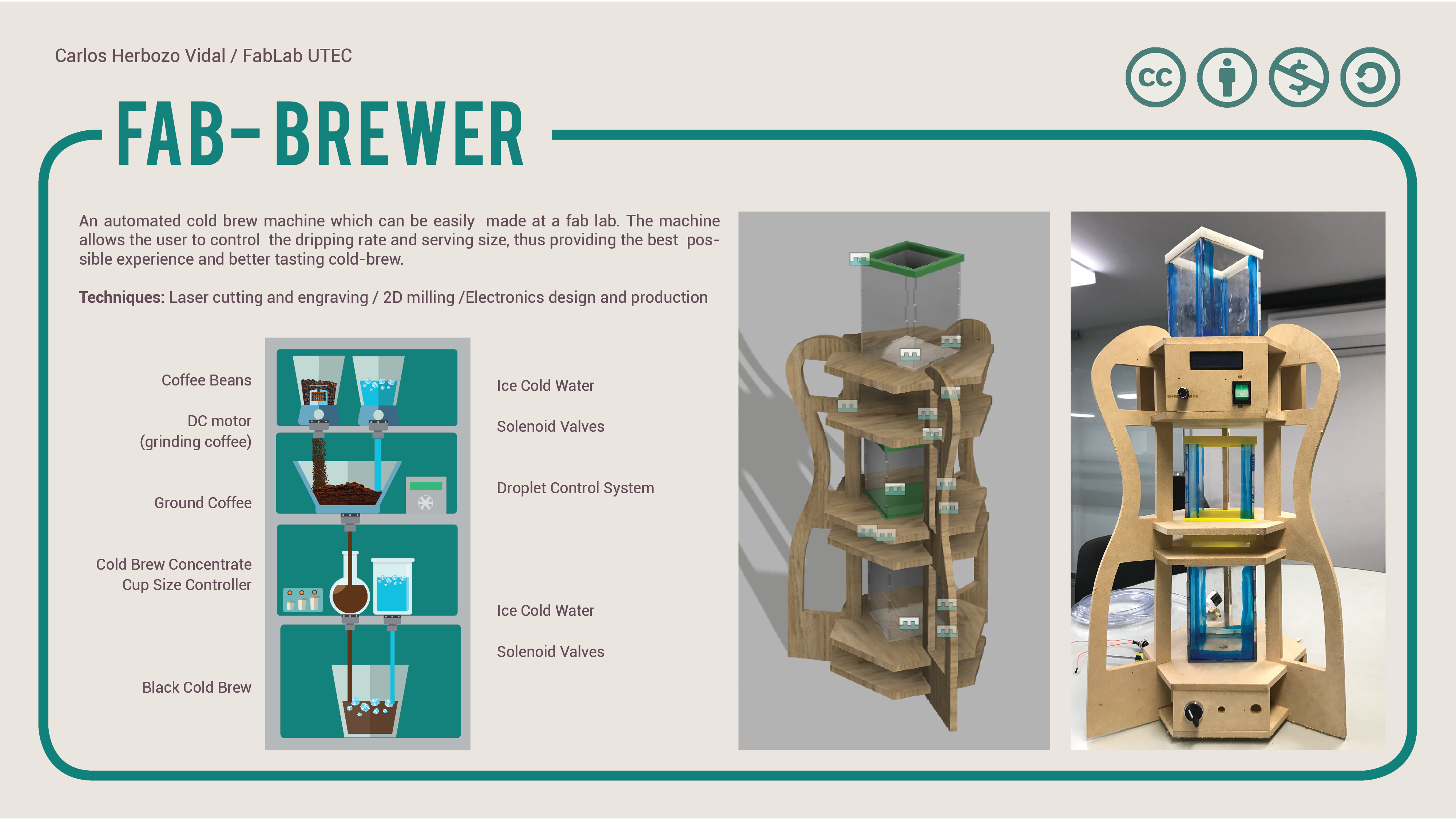 For my final project I want to create a "Fabable and Automated Cold Brew Coffee Machine". As my description says, I am a Coffee enthusiast. I find Cold Brew Coffee to be my favorite beverage during Lima's hot summer days. I was looking forward to enjoying Cold Brew this summer but local Starbucks' have stopped selling them, and I have no other way of purchasing the beverage. As I was researching ways of producing Cold Brew, I found out that the process was quite complex, and not so easy to recreate. I've found several machines which are either expensive, or don't allow for beverage customization. Also, this machines are not automated. The current process is as follows: