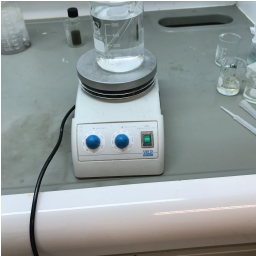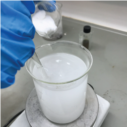 Now, I wanted to crystalize on top of the fabric. I used borax crystals because borax is quite easy to obtain and its unharmful to work with. Sugar and salt are also viable choices. The first step when crystalizing is boiling water.