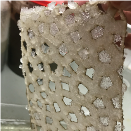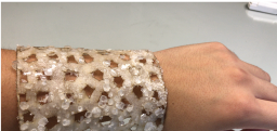 Because of Fabricademy, I had some experience working woth textiles and digital manufacturing, so I decided to try to apply these techniques. My idea was to create a bracelet using fabric and borax crystals. I started designing the bracelet in grasshopper.