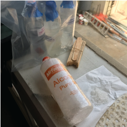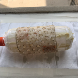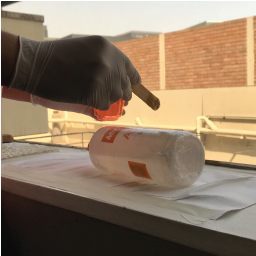 I added shoe-shiner on top of the bottle to prevent the fabric from sticking to the plastic wrap.