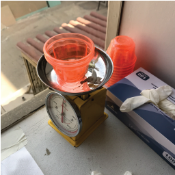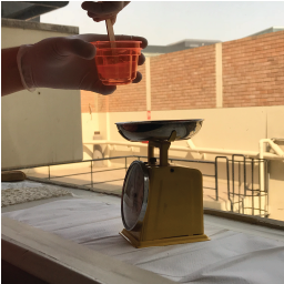 Ther first step was weighing the components. I used two parts component A, and one part cathalyzer (component B).