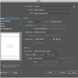 In order for the Laser cutter to operate properly, the stroke weight must be 0.00025. Anything other than that and the Laser cutter will either ignore or engrave the design.