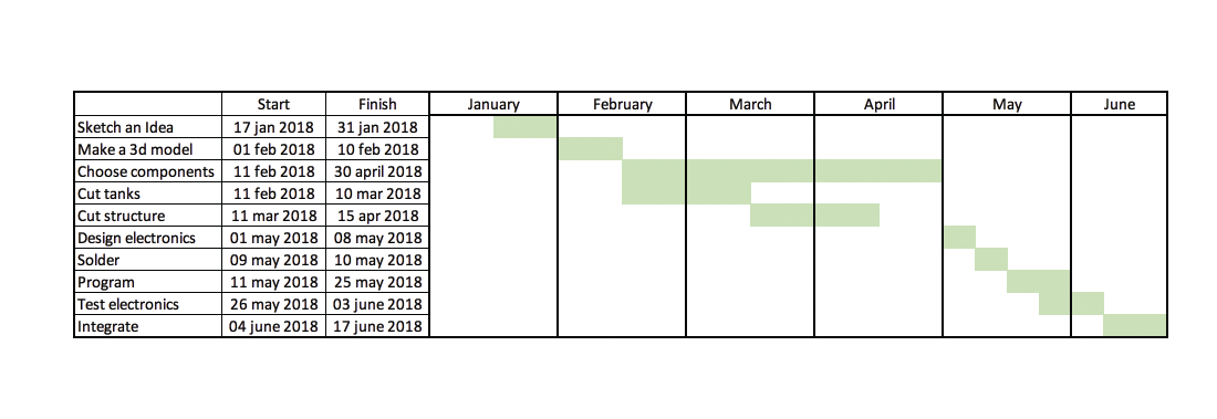 I have designed the boards and the tanks, but I have yet to cut and assemble them. I still need to program and test the fucntionality of the project.