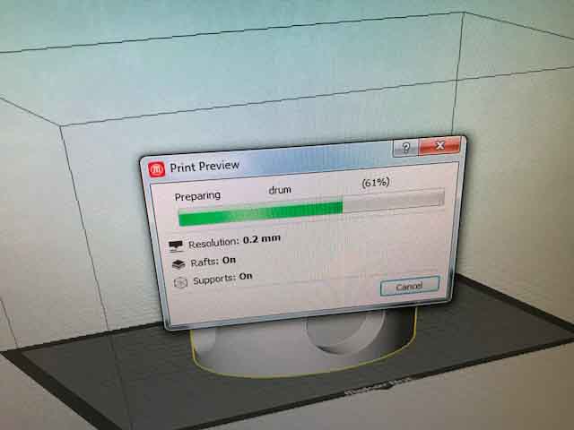 Fig2. Drum design on inventor and printed on Makerbot 5th Gen .