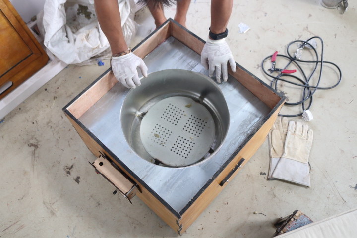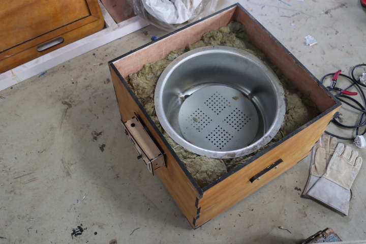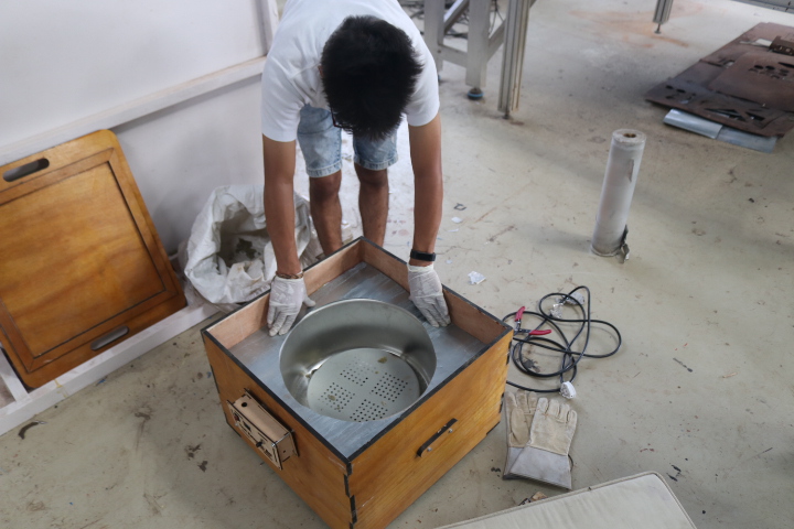 Fest I assemble the box and next step inside the box 2cm insulation in glasswool and put a pot 25 liters this pot bottom side fix a heating coil 250 watt .and heating coil up side one part. the part support in food pot.and properly fix the all component and temperature sensor fix pot inside area and the temperature is fix 45 to 50 degree 50 to up and 45 to down auto cut. all electronic parts for make one box and the box inside my final board,relay board and temperature display Oled,mane switch,indicator and all wearing systems