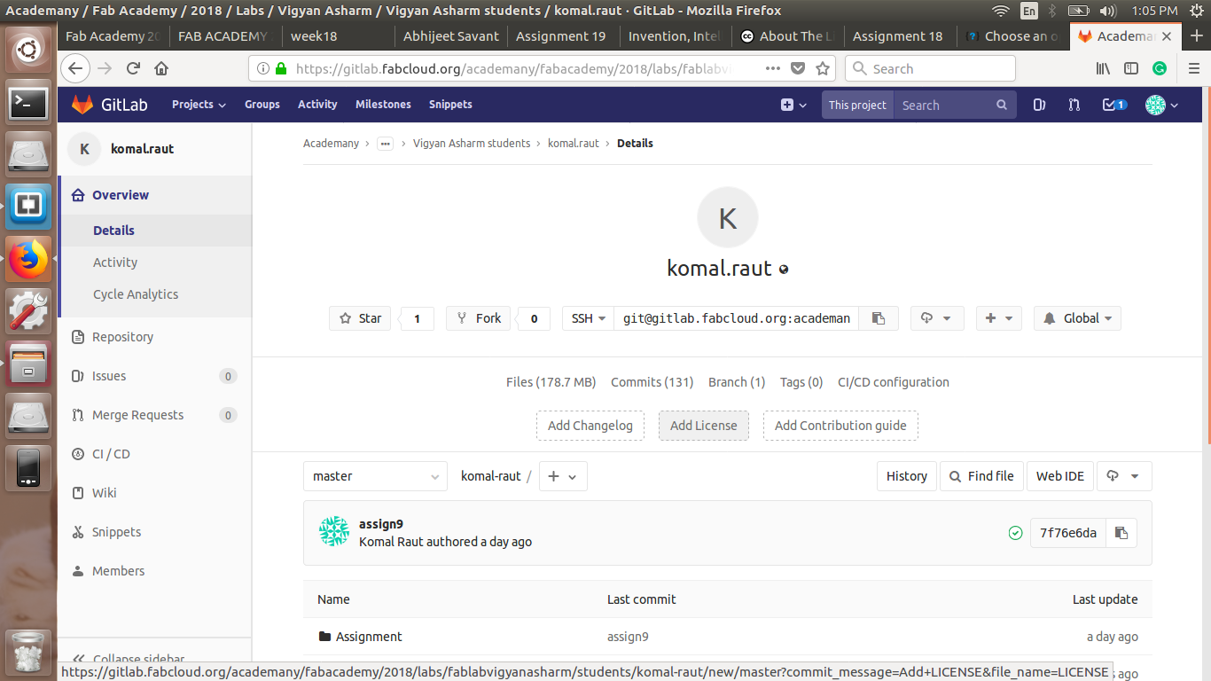 In this week I studied about intellectual properties and license. I generate license for my project.