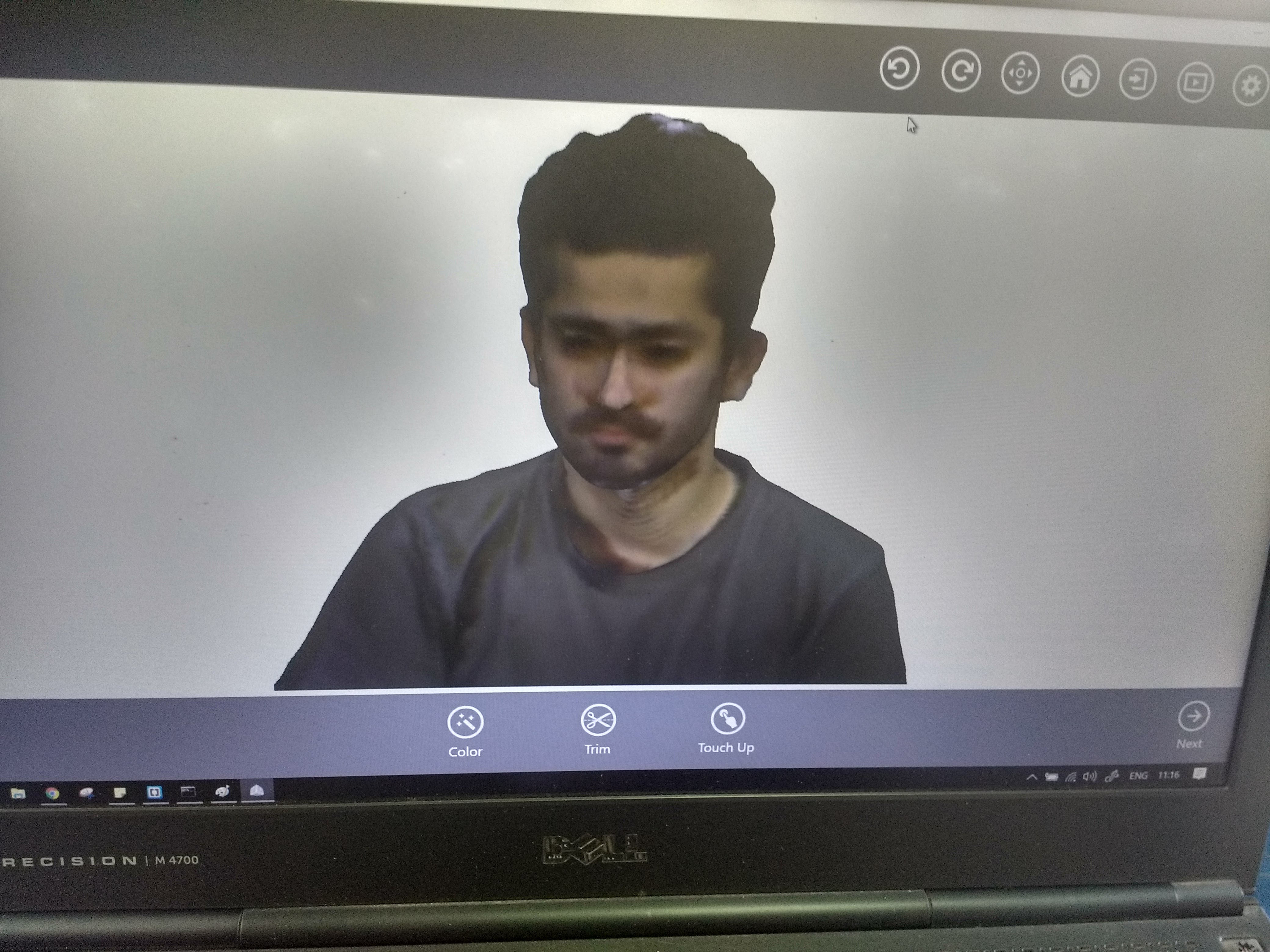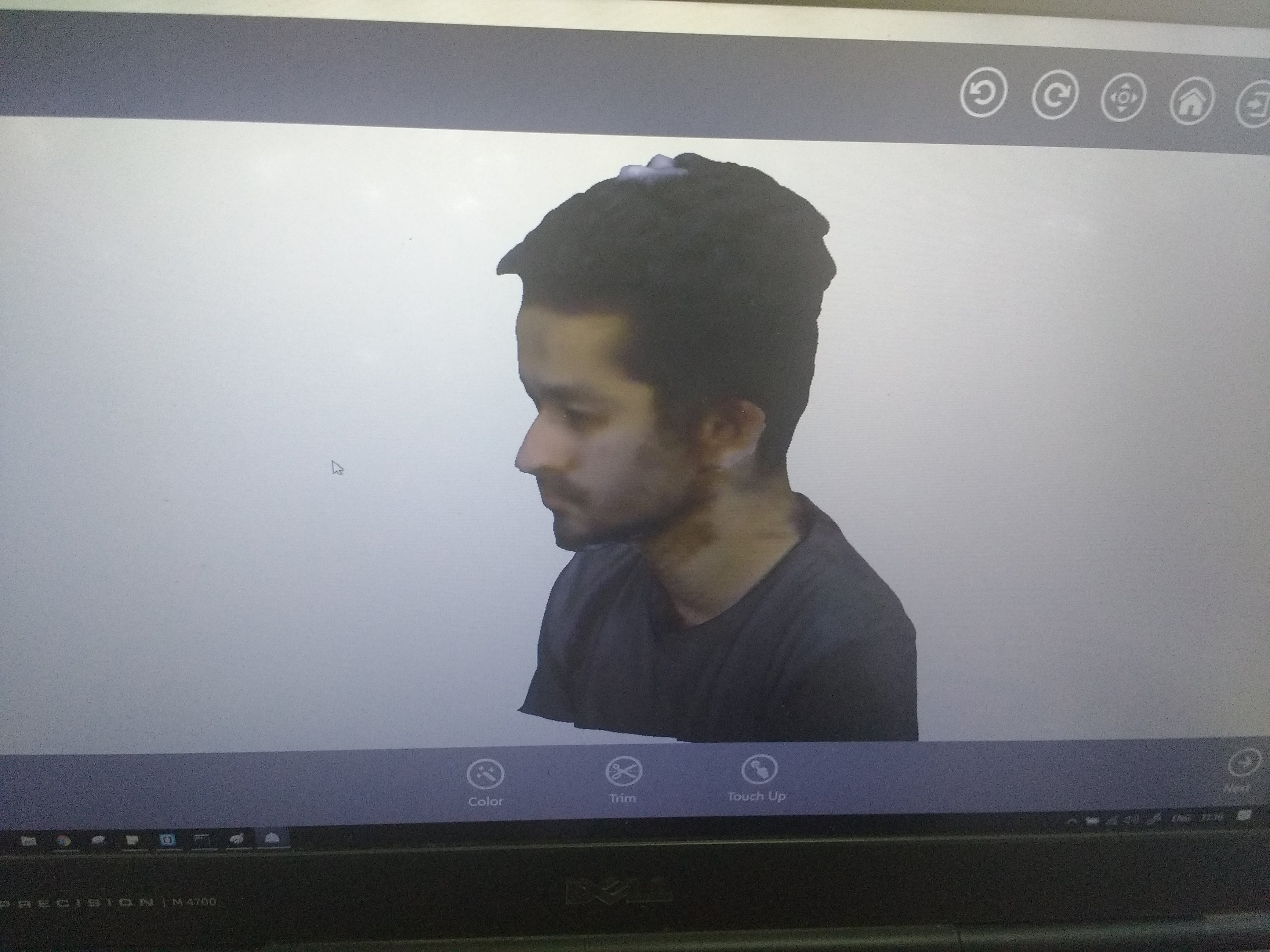 After completing 360 degree , a 3D model is generated of my head. Notice the distortion of the hair and the eyes . This is due to the reflectivity of both which messes up the scanner.
