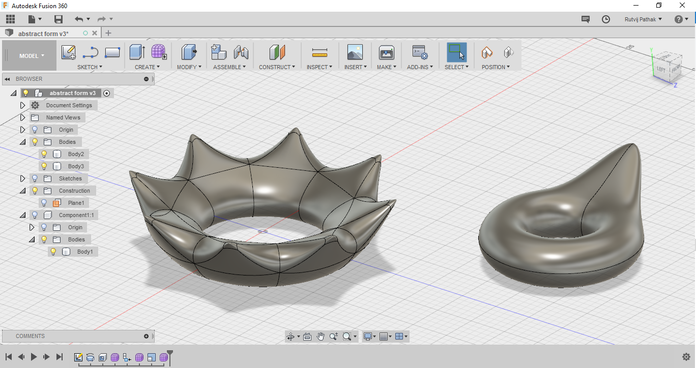 Learned 3d printing . Learnt the sculpt environment in Fusion 360 .