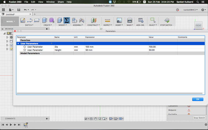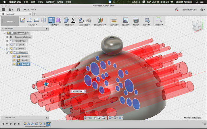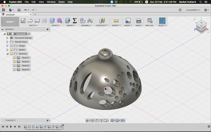 I selected the plan. And gave the paramatric daimentions. Went to sketch and drew an arc and went to revolve. to make some hole I drew some circles and made them through out. and saved my file as .stl to print.