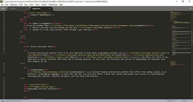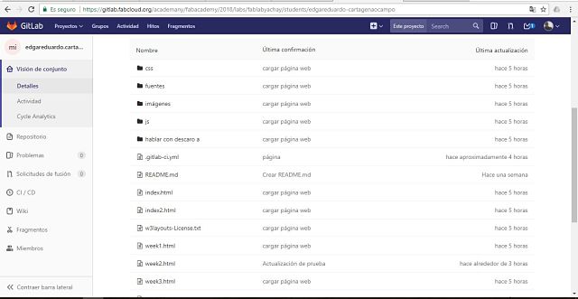 Once the web page is ready, we proceed to upload the files to the FabAcademy repository, for this it was very helpful to first follow the gitlab tutorial. Same that allows to know the main commands to add, modify, comment and delete files from the repository. All the information on version control can be found on the FabAcademy platform.