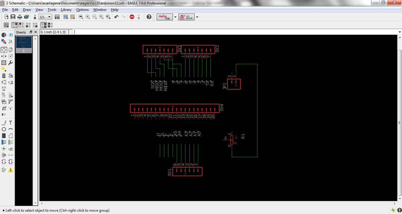 At the suggestion of Roberto Gallo instructor of Fablab ZOI, I have designed a shield that allows me to directly connect the graphic screen to the development board that I designed in the week of Interface and Application.