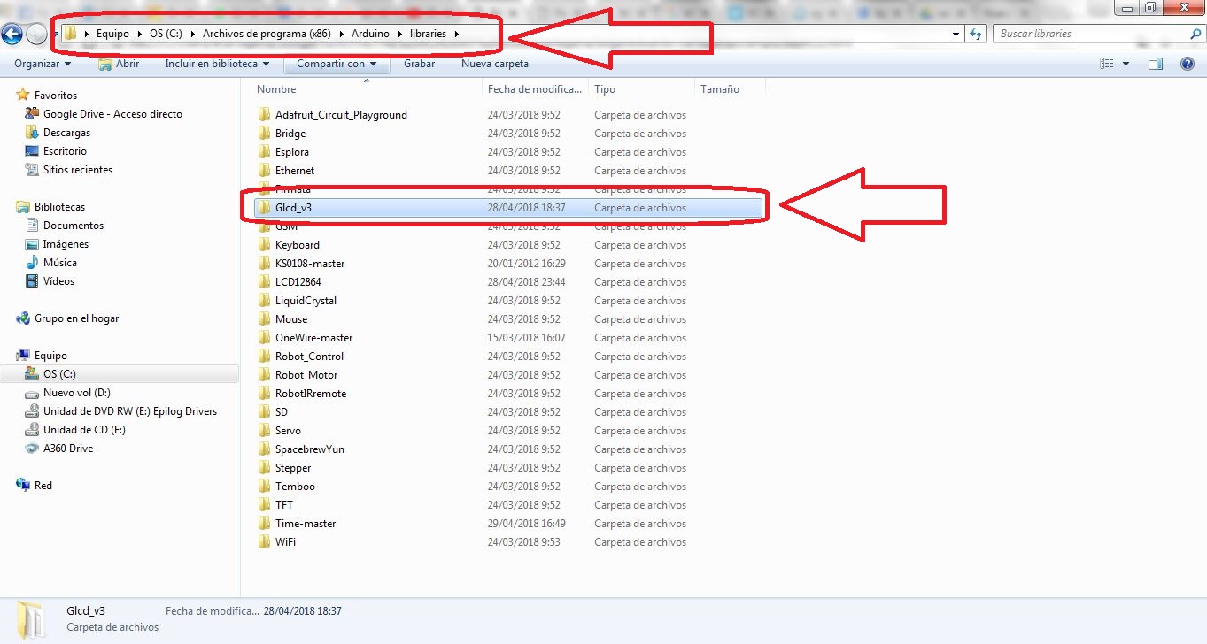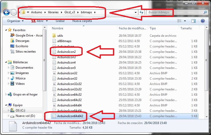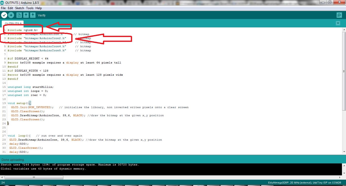 To program use the integrated development environment of Arduino, it is necessary to download the library GLCD.h