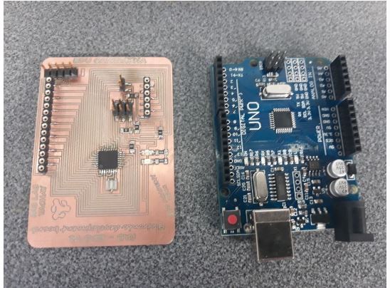 For this week I wanted to try different output devices, so I decided to design and manufacture an electronic development board similar to an arduino ONE board.