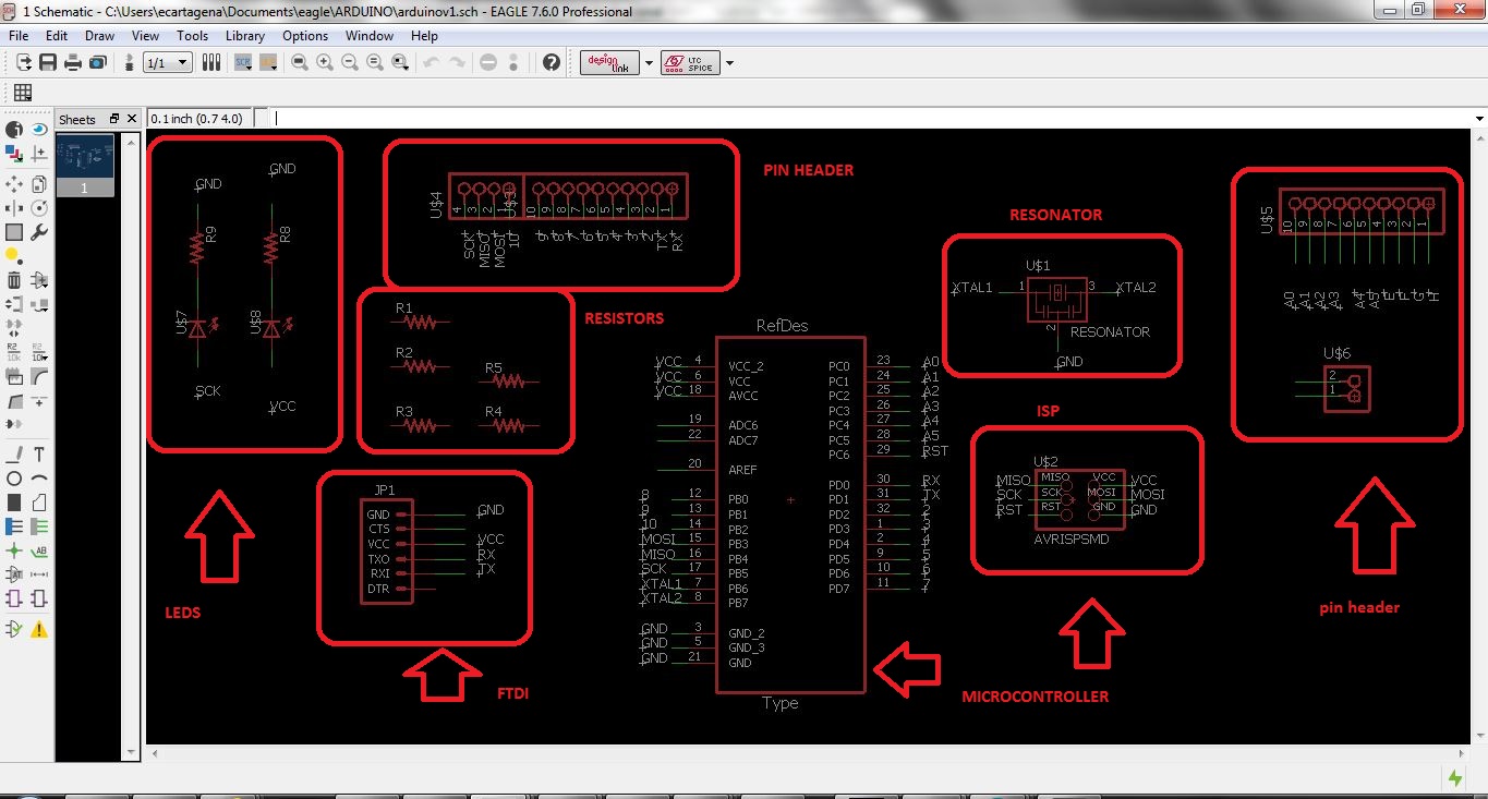For the design of the electronic development board use the EAGLE software of Autodesk
