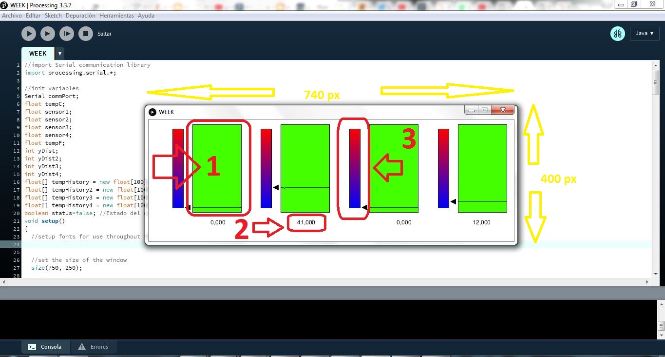 For this assignment I decided to make an interface that allows to visualize the values obtained by the sensors. For this use the processing software.