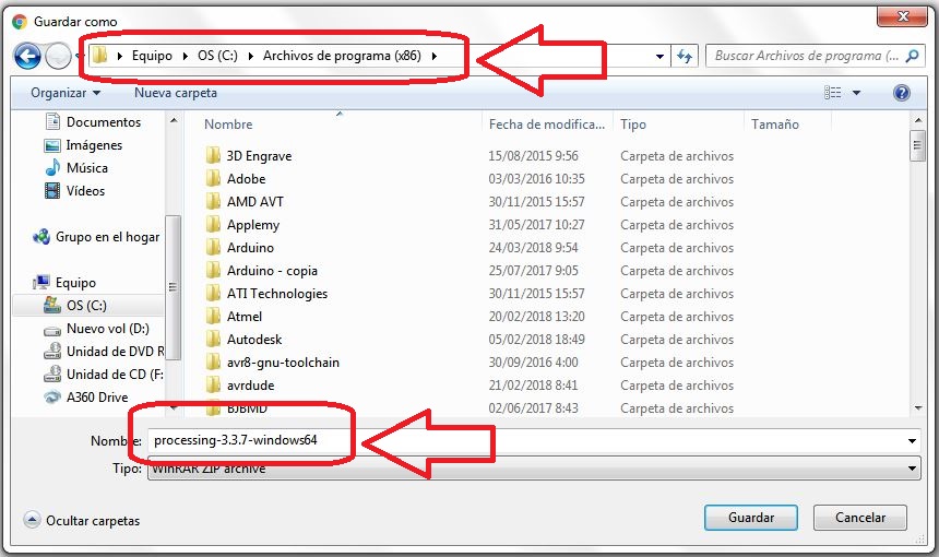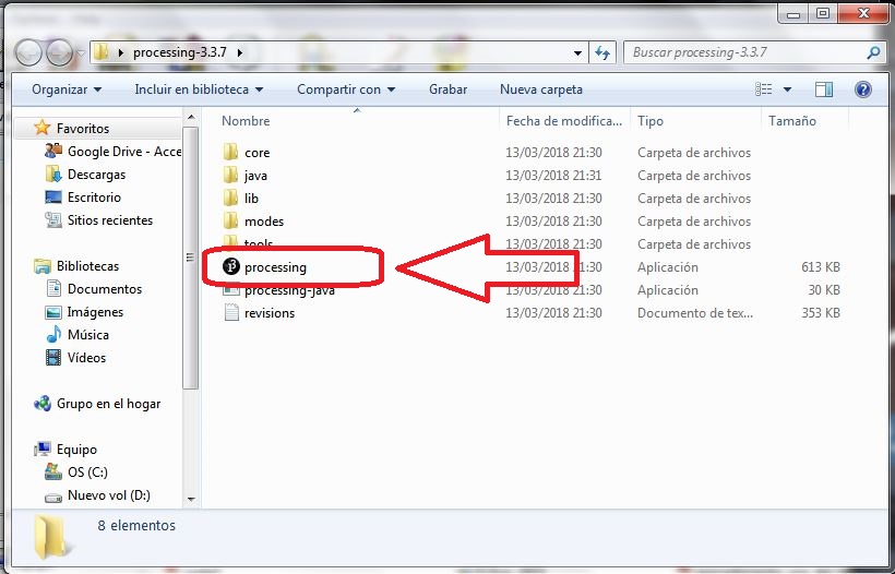 It is only necessary to unzip the file and we will have ready the development environment of processing to program our application and open the software.