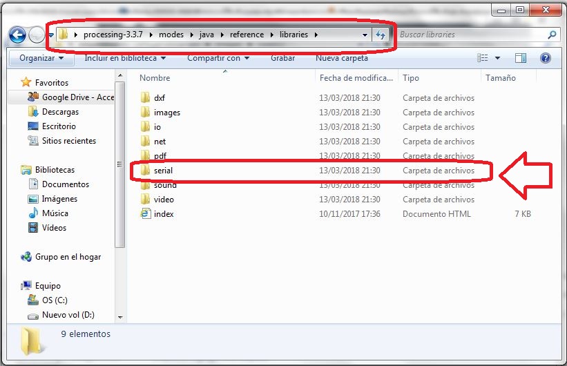 After installing the integrated processing development environment it is also important to download and install a serial communication library that allows us to send and receive data through the serial port to communicate with the microcontrollers, this library is usually by default however you can download it in the following link.